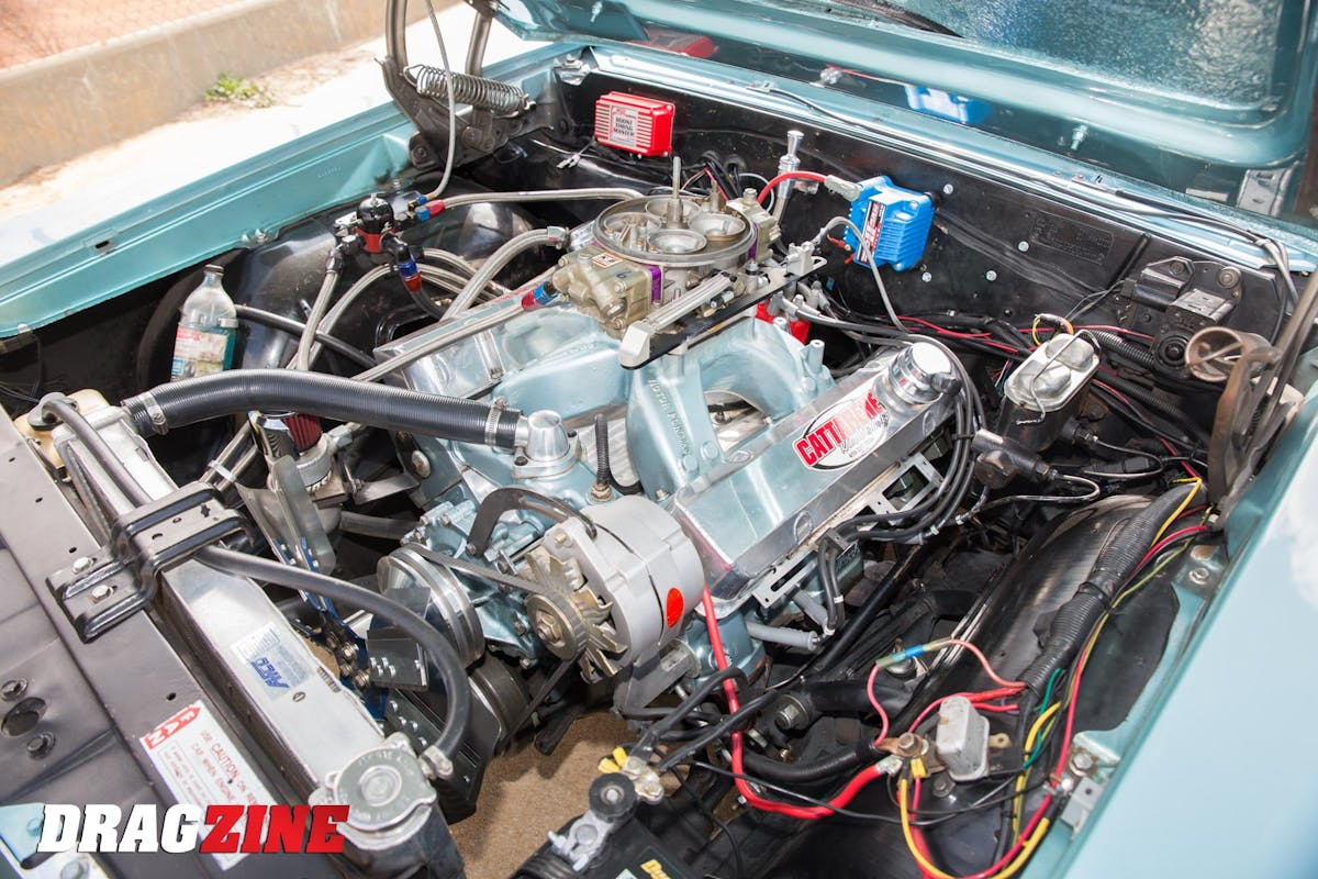 After Dave took possession of the Tempest he began to upgrade the car to meet his vision. The goal was to build a car that was reliable and easy to work on without pushing the selected parts outside of their operating abilities. An 8.50 E.T. certified rollcage was added to the chassis along with a new rear suspension that featured a Moser rearend and a new front suspension with aftermarket control arms. Providing the Pontiac power is a 474 cubic-inch engine with Edelbrock cylinder heads that’s backed by a Rossler-built transmission. To suck fuel from the 16-gallon fuel cell, Dave selected an Aeromotive fuel pump.