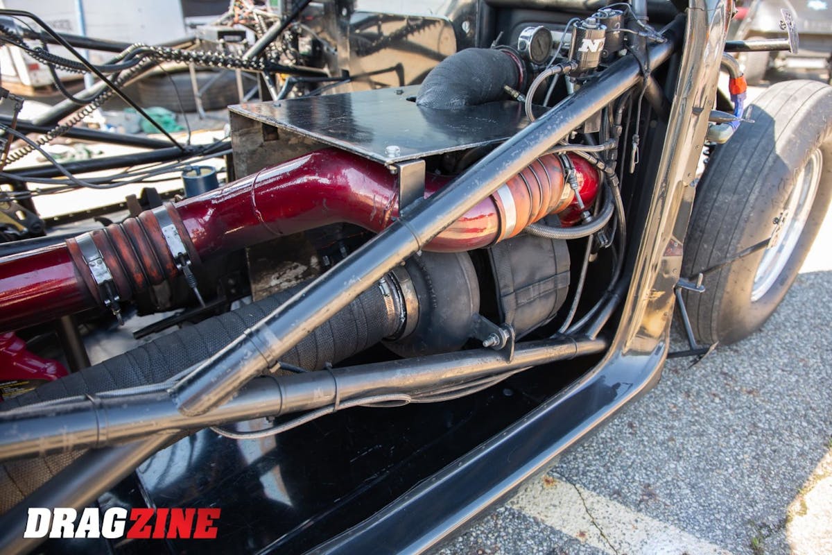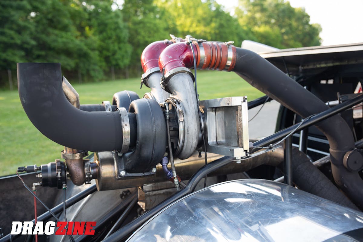 “We’ve got a ballistic blanket and a scatter-shield in the cab…everything is wrapped up pretty tight in the cab with me,” Steve says. “It’s not legal NHRA, they won’t let you put a turbo in the cab, but we don’t run NHRA, we’re outlaws, doing our own thing. It is dangerous, but we’ve got safety things involved, and I should be fine. If it goes through all of that, it was meant to be.”