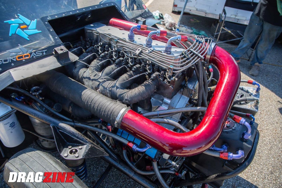 The two Forced Induction turbos out back produce 40-pounds of boost, and when compounded into the larger turbo in the cockpit (this is being replaced by a 114mm from Hart’s Turbo for ‘22) and mixed with nitrous oxide, delivers a whopping 170 psi into the intake manifold. “And we can make more,” Royalty says, adding, “it’s blowing off at 170, so we could make a lot more. We’ve got 99 problems, but boost is not one of them. A hundred and seventy is plenty.”