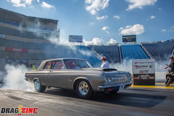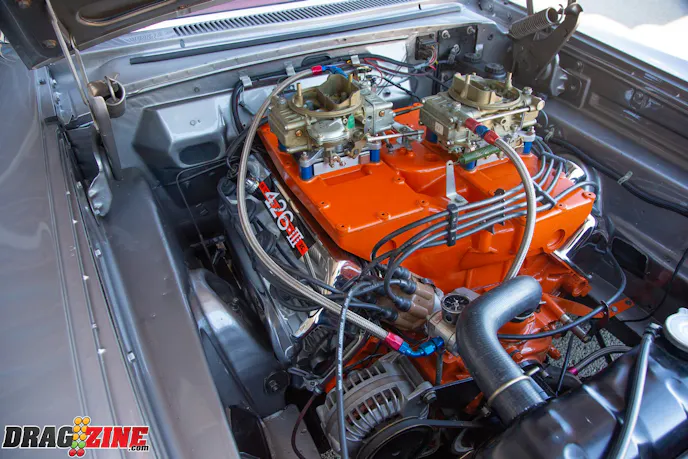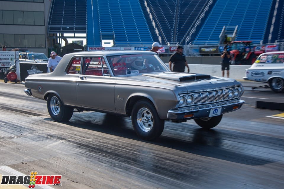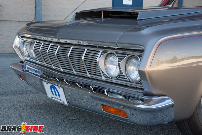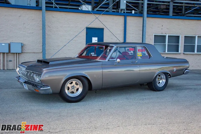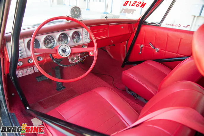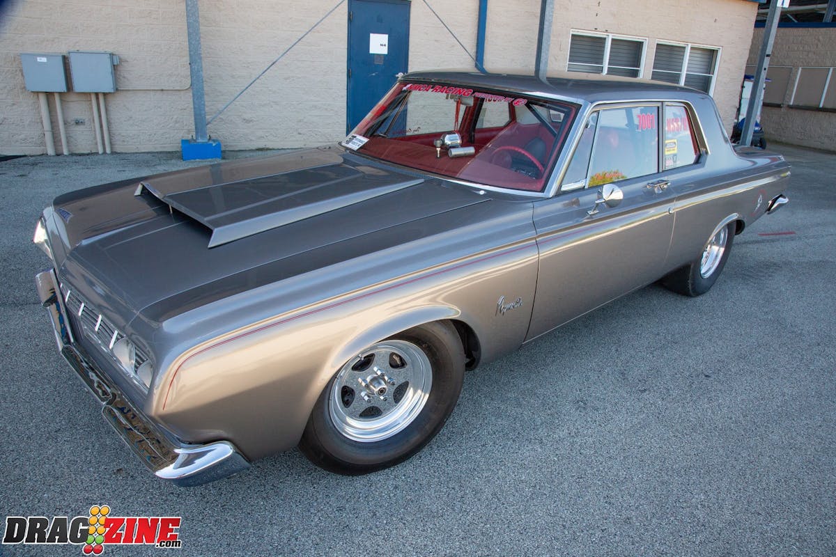 Tom’s 1964 Plymouth Savoy is a unibody frame so it is strengthened by subframe connectors. The power is in the form of a 426 Hemi with a Mopar Pro Stock crank, CP-Carrillo connecting rods and CP-Carrillo pistons. A set of nostalgic aluminum fuelly heads with Stage V rockers are being controlled by a Bullet Racing Cams roller cam with exhaust fumes being handled by Dawson headers. The transmission is a ProTrans 727 with an ATI converter. The rear suspension uses a set of Cal Tracs from Calvert Racing Suspensions with a Mark Williams Dana 60 rearend that has a set of 4.56 gears inside. Tom’s Savoy rolls on Bogart Racing Wheels Drag-On Star wheels out the back, with Hoosier lightweight radials and Moroso Drag Stars in the front for rubber.