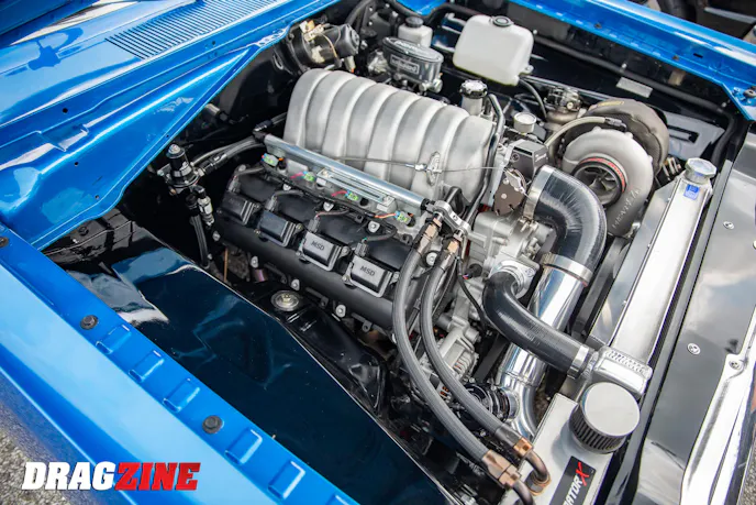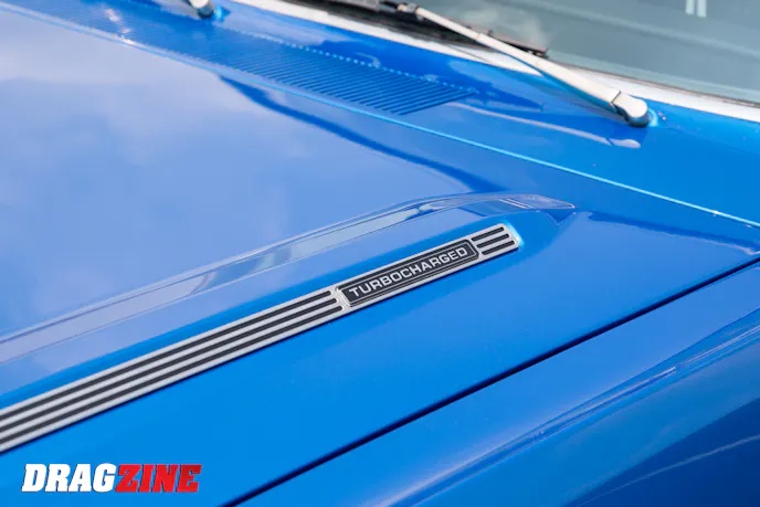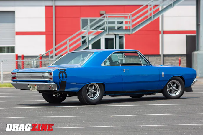 At first, Smith enjoyed the Mopar muscle in naturally-aspirated form as the Dart had come already equipped with a nice 5.9-liter Magnum V8 crate engine. Wanting to enhance the car’s looks to match its performance, he invested the money he made from selling his Nova into a new paint job. “I drove around a bunch of car lots until I found the perfect color, which just so happened to be a Dodge one,” he admitted of his dedication to selecting the exact right shade, Hydro Blue, which he then had Gary Richey of Mr. Muscle Restoration spray over the Dart’s body.