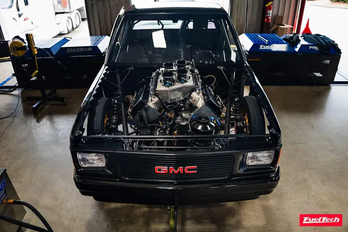 Early on, the S-10 proved exactly that. The truck debuted with a 632 cubic inch big-block combination paired with a non-lockup converter and a single-stage nitrous system. Even in that relatively simple form, it was a handful. “The thing hauled ass… it was so fast for what it was,” Dean says. That combination carried him to multiple wins last season and established the truck as a serious threat in no-time racing.