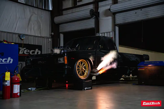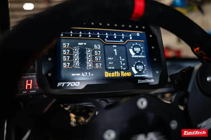 After shaking it down at Lights Out in South Georgia, Dean took the truck to FuelTech’s headquarters for a full dyno tuning session and ECU transition. The truck now sports a FuelTech FT700 ECU, making it one of the first serious nitrous applications to utilize the platform. “I actually have the first serious nitrous car with a 700 on it,” he says. “We were kind of the guinea pig, but they got everything sorted out within 10 pulls.”