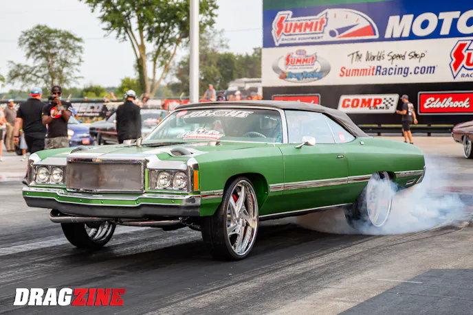 The NDRA has a total of seven different classes for racers to compete in. The Donk Classes are for the 1971-1976 Chevrolet Caprice or Impala body style vehicles. The G-Body Classes are for 1969-1988 G-body vehicles like the Malibu, El Camino, Monte Carlo, Oldsmobile Cutlass, Pontiac Grand Prix or Bonneville, and the Buick Regal. The Donk and G-Body Classes are split up into Lightweight, Middleweight, and Heavyweight classes based on if they have a power-adder and level of modifications. The NDRA also has an Open Format Class for vehicles that don’t fit into the Donk or G-Body classes.
