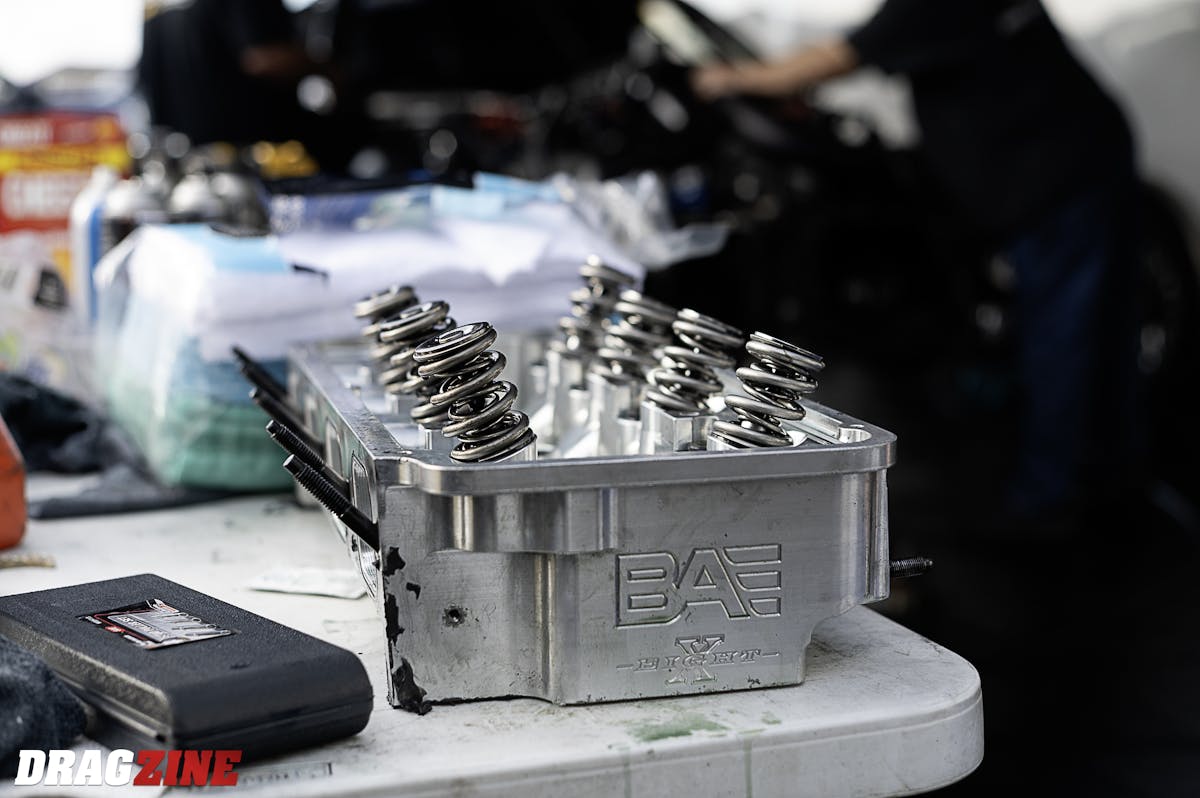 Things were looking up for Brad, he had the car back under his control and it was running well, but then everything went sideways after his round one win on Saturday. The Hemi decided it wanted to munch on some parts, but thankfully Brad had some spares and it was thrash time in the pits.