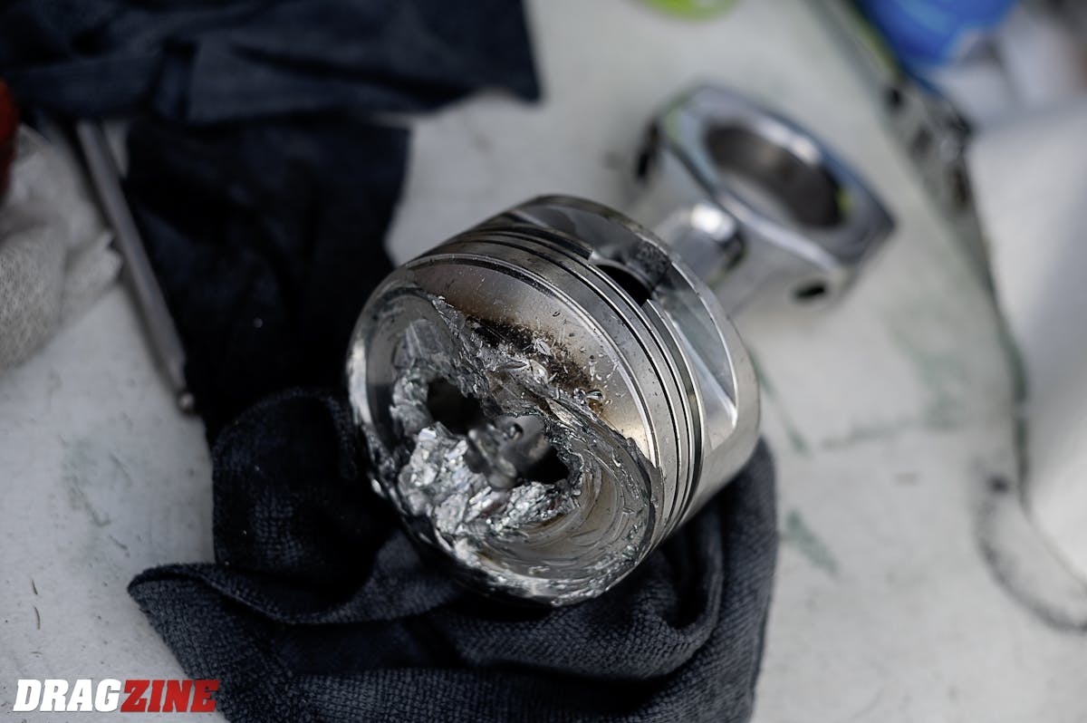 “I’ve got a great team and friends like Cord Collins and the Miller family. We got the car back to the pits and found the damage pretty quick. We pulled the head off and Jeff Miller brought us a fully assembled spare head to use. The piston was shot and the sleeve was damaged, so Cord put a fresh one in super-fast. We got everything put back together and ran a 3.71 to beat Bill Lutz the next round,” Brad states.