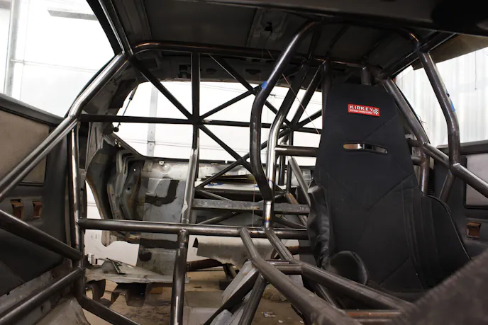 With such an extensive car collection and an incredible race car, you might wonder what Joe does for a living. The correct answer would be just about anything racecar related. Dominator’s main building is a full chassis and fabrication shop. It houses some of the cars that he’s stashed away for a rainy day, but also his racecar (which was completely pulled apart for service while we were there) and a slew of customer’s cars that range from tubbed street trucks to full-blown drag radial cars.