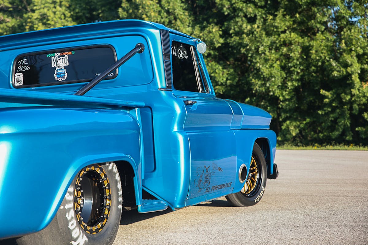 You can’t have a gasser without a manual transmission, right? Larson bolted a T56 Magnum transmission from Rockland Standard Gear up to the Chrysler mill. A McLeod flywheel and RAM clutch take care of making the transmission send power to the DANA 60 rearend.