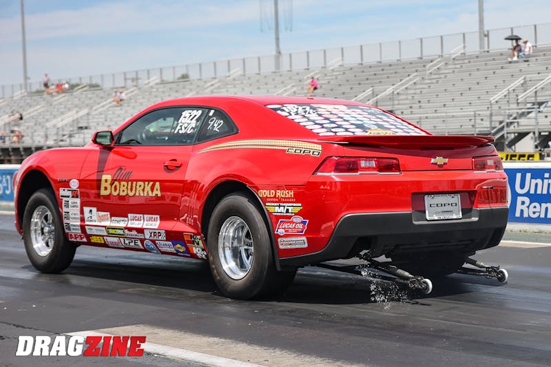 Piranha Fabrications used a set of AFCO double-adjustable struts as the base of the front suspension. The rear suspension features a custom 4-link setup, AFCO double-adjustable shocks, and a fabricated 9-inch rearend filled with parts from Strange Engineering. The rearend is connected to the Wane Rogers-built TH400 transmission and ProTorque torque converter by a PST carbon fiber driveshaft.