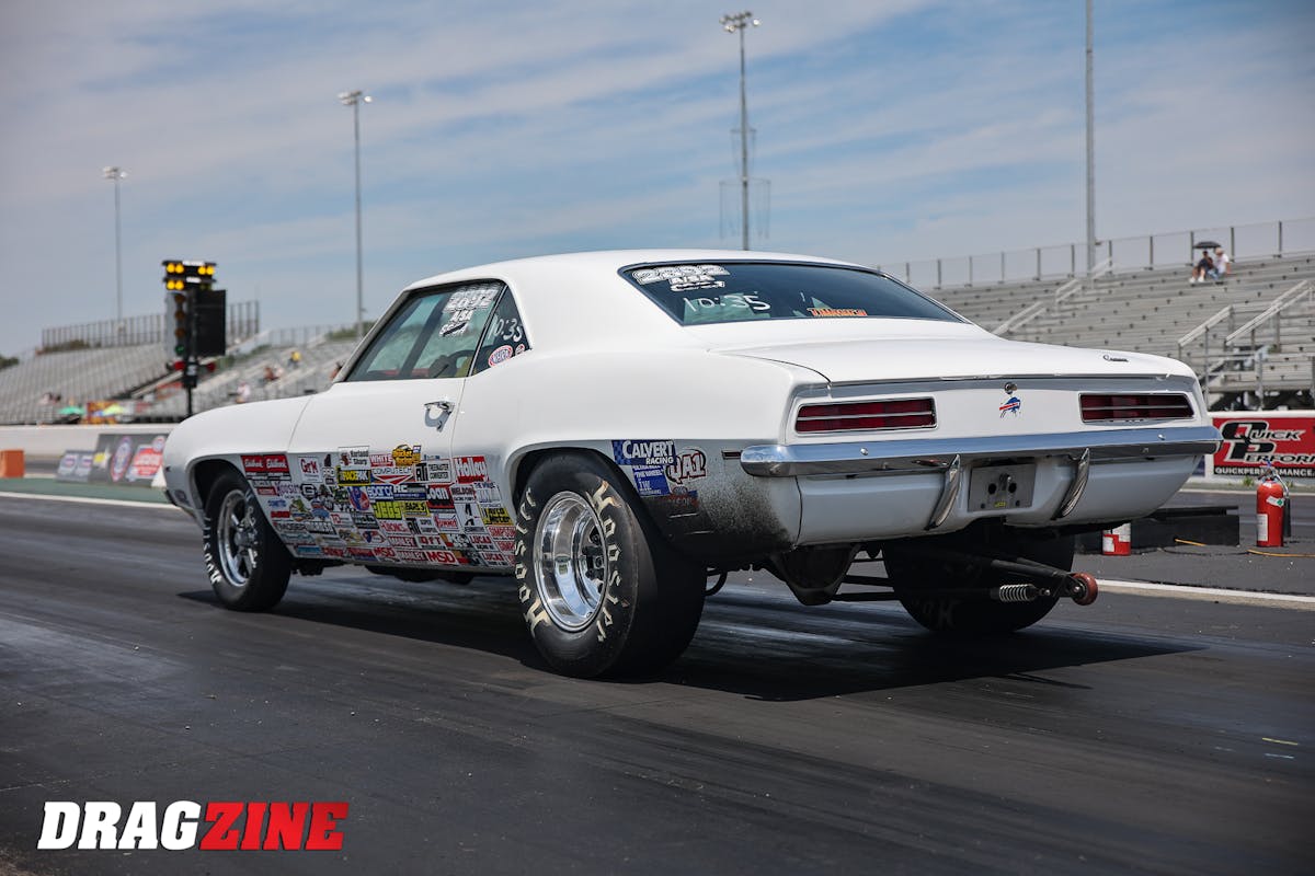 Piranha Fabrications used a set of AFCO double-adjustable struts as the base of the front suspension. The rear suspension features a custom 4-link setup, AFCO double-adjustable shocks, and a fabricated 9-inch rearend filled with parts from Strange Engineering. The rearend is connected to the Wane Rogers-built TH400 transmission and ProTorque torque converter by a PST carbon fiber driveshaft.