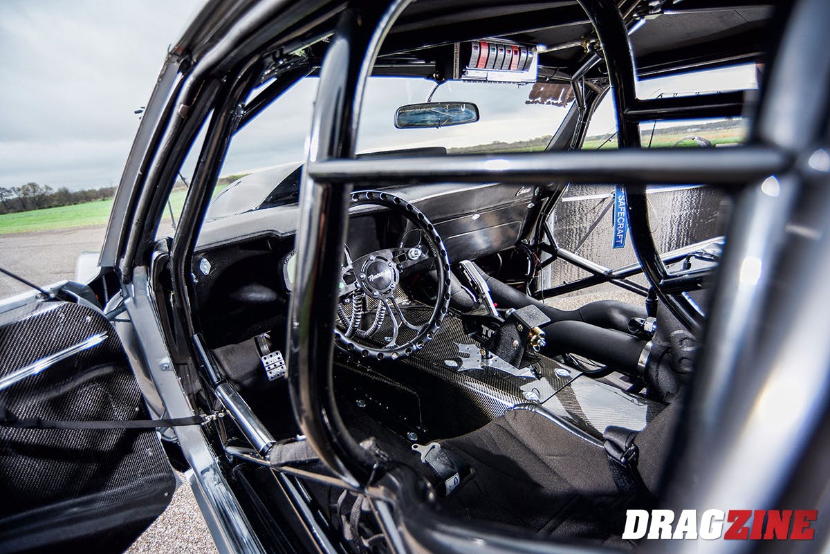 Inside the 25.2 certified rollcage, either Adam or Isaac are held in place by a set of Impact seat belts as they monitor the Camaro’s vitals via the RacePak dash. To help remove weight from the car, a full carbon fiber interior has been used in place of the stock steel panels.