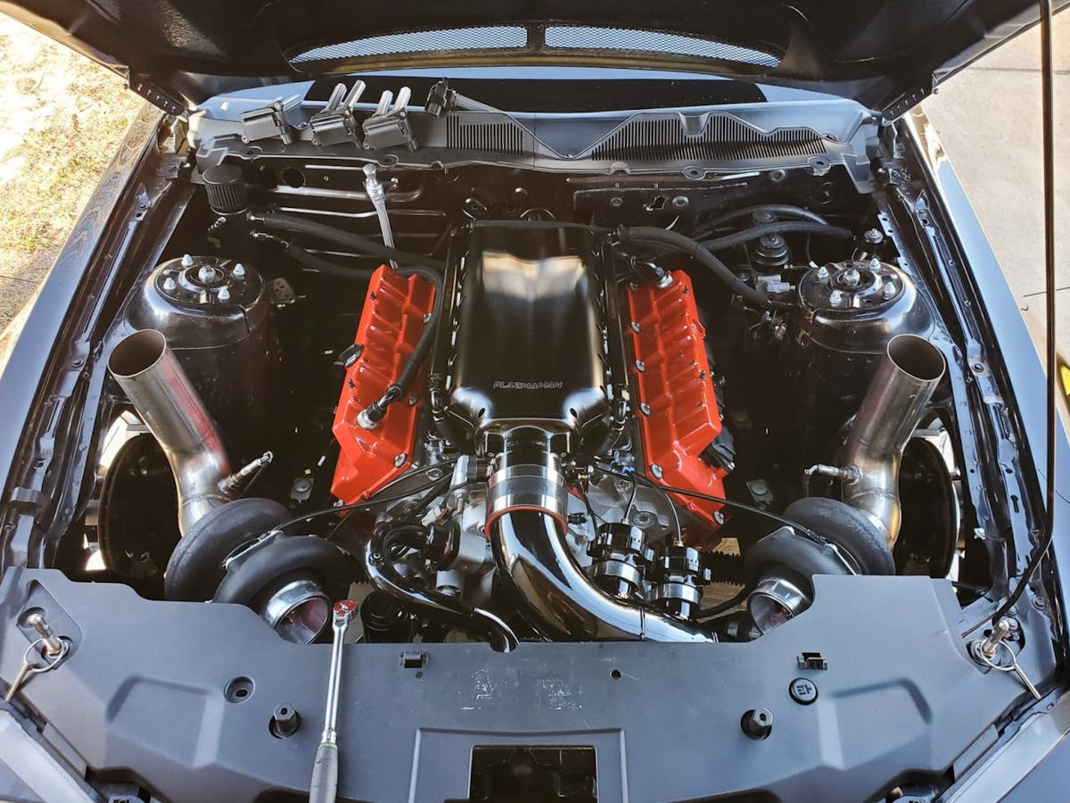 “I used to have a shop and this was the shop car. I put nine supercharged Coyote engines in that car, and broke every one of them. If it could be broken, I broke it…crank sprockets, timing chains, valve springs, cam phasers, crank snouts, I broke it all. But part of it was we were running a supercharger, which is hard on the Coyote. After the ninth engine, I was going to part it out and just call it done,” Matthew tells.