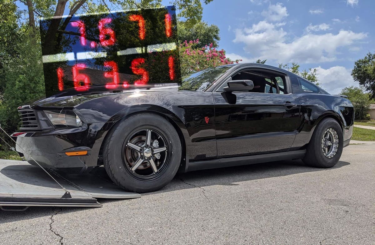 Behind the Hemi is an FTI Pro Series Level 5 Powerglide with an ATI case with a billet bolt-together torque converter. The Mustang has “every BMR part that’a made for it,” a result of close friendship Kesatie had with an employee at the likewise Florida-based suspension manufacturer. He has also utilized custom spec’ed Viking Crusader shocks all the way around. The 8.8 housing sports a Strange 35-spline spool and axles and C-clip Eliminators. A Team Z Motorsports brace kit stiffens the housing up to take the abuse. Last season, Matthew had a 3.73 gear in the car, which severely limited its potential in the 1/4-mile (it was intended for 1/8-mile competition, but he attended the SCT event in large part to draw eyeballs to the project via 1320Video). He has since re-geared it to a 3.55 gear to try getting a little bit closer to a full 1/4-mile run.