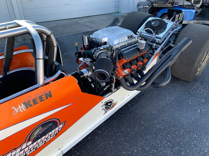 “He’s telling me this thing is really, really good,” Scheid says. “It’s repeating run after run — Jeff even said it’s better than his dragster. After a year or so of running it, we were having some beers at the shop one night and his dragster is over here with no motor in it, and I said, ‘have you ever thought about putting a Hemi in it?’ He says, ‘heck yeah, let’s throw one in there.’ Once he said that, I was set I was going to do it.”