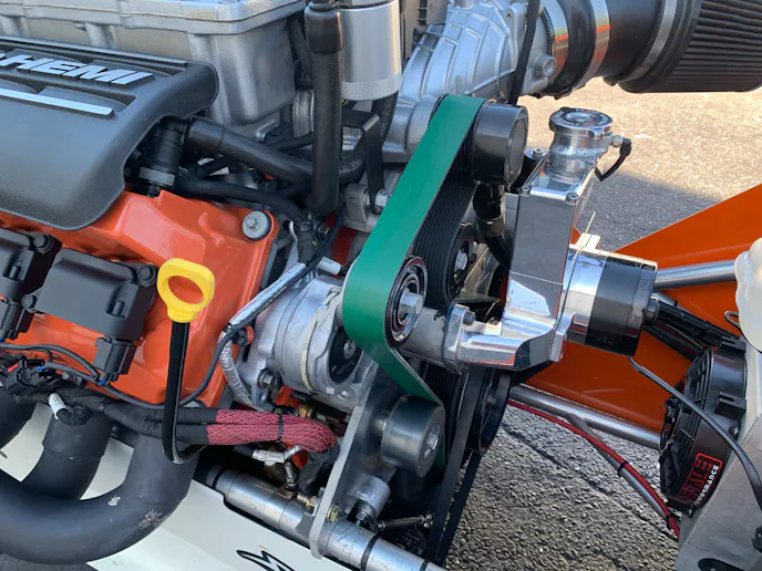 “We drew it all out, Jeff got on the phone with several of the contacts he has in the industry, and they were all ready to work with us,” Scheid says. ATI Performance Products fabricated a mid-plate and provided a flexplate to complete the conversion, and then attention was turned to the motor plate. Scheid’s and Keen’s goal was to ensure that any parts they used could be readily found locally or at the track — nothing unique or uncommon. They designed the front plate to accept a Meziere Chevrolet water pump, repurposed the factory oil pump, and utilized a Deatschwerks fuel pump.