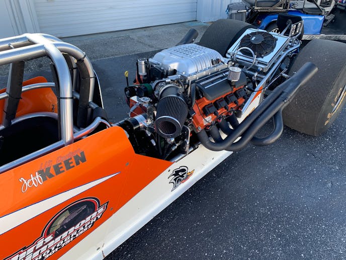“He’s telling me this thing is really, really good,” Scheid says. “It’s repeating run after run — Jeff even said it’s better than his dragster. After a year or so of running it, we were having some beers at the shop one night and his dragster is over here with no motor in it, and I said, ‘have you ever thought about putting a Hemi in it?’ He says, ‘heck yeah, let’s throw one in there.’ Once he said that, I was set I was going to do it.”