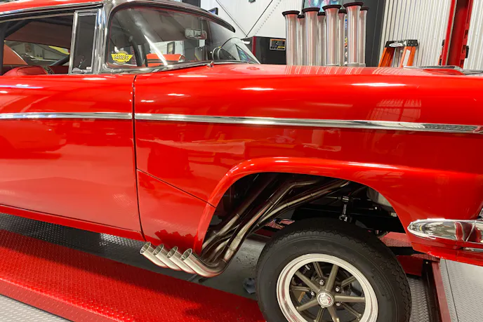 “We’d been looking for them for years, because they’re just so rare. We found four of them listed for sale by Pro Stock racer racer Warren Johnson, and I bought all four of them. Two of them are on this ’56, and I’ve got the blown Pro Street ’57 I’m going to put one on, and then my son is running a blown 427 ’55 with a Lenco that we may put one on. When I called Warren, he talked to me for a good half-hour about them. I think he was going to run them on one of his cars and then NHRA outlawed them, so the set of these carburetors I have on this car now had never been used.” It’s definitely cool to think these rare parts had sat for essentially half a century untouched.