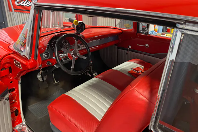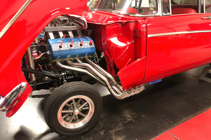 The Gasser-style ’56 is powered by a rather rare Boss 429 Hemi with Arias-Root Hemi heads, measuring 665 cubic inches. On his preferred Sunoco 110, the engine dyno’ed at 1,065 horsepower naturally-aspirated, and the car has been down the 1/4-mile in 10 seconds flat in its very limited use as a racing machine.