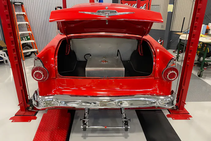 “We’d been looking for them for years, because they’re just so rare. We found four of them listed for sale by Pro Stock racer racer Warren Johnson, and I bought all four of them. Two of them are on this ’56, and I’ve got the blown Pro Street ’57 I’m going to put one on, and then my son is running a blown 427 ’55 with a Lenco that we may put one on. When I called Warren, he talked to me for a good half-hour about them. I think he was going to run them on one of his cars and then NHRA outlawed them, so the set of these carburetors I have on this car now had never been used.” It’s definitely cool to think these rare parts had sat for essentially half a century untouched.