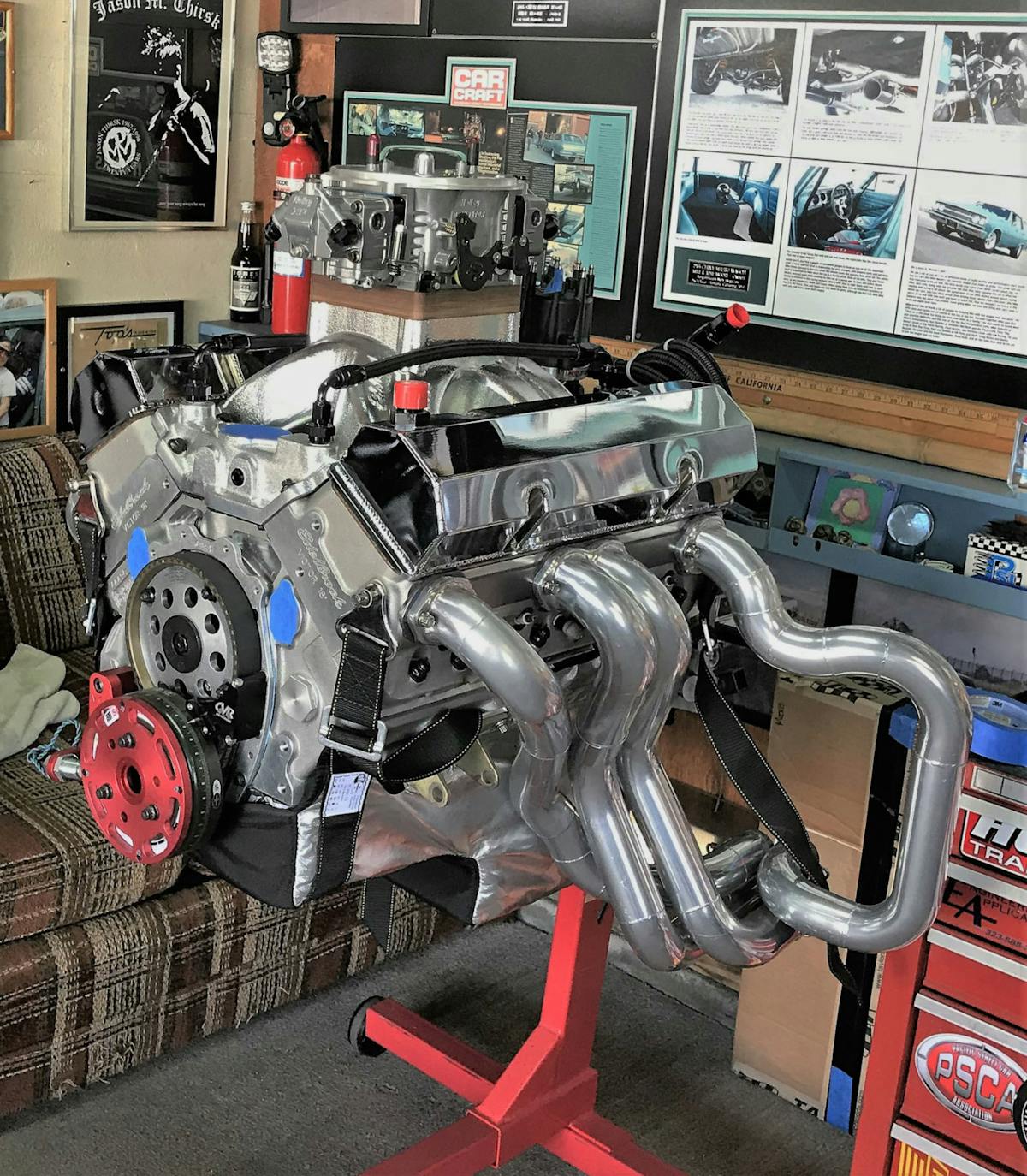 The 383 later gave way to an all-aluminum, 18-degree Brodix small-block built by Mark Millhollin at Hot Rod Performance in Torrance. The 434-inch engine sports a 4.15×4-inch bore/stroke combination in the 9.027-inch deck aluminum block; Hot Rod utilized a SCAT crankshaft and H-beam connecting rods, and CP pistons for the rotating assembly. The valvetrain consists of an Isky custom-grind cam, Manley valves and pushrods, T&D rockers, and Edelbrock 18-degree CNC-ported has, all resulting in a 14.21:1 compression ratio. The mill is topped with an Edelbrock intake manifold and an 1150 cfm Holley Dominator carburetor.