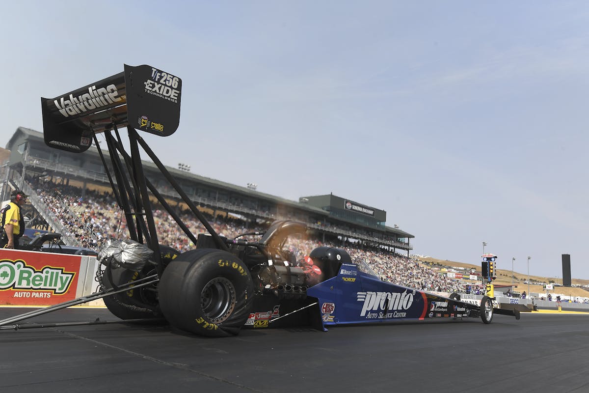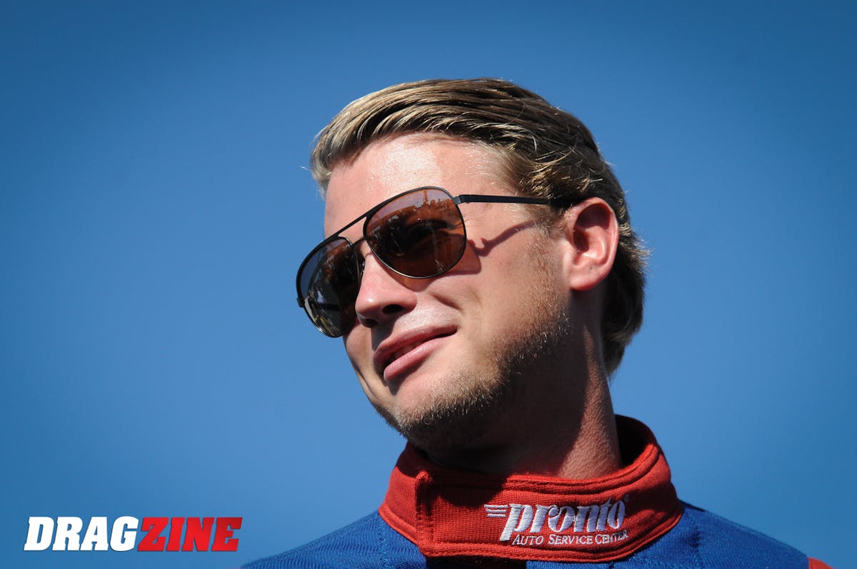 And it’s all in a day’s work for the more reserved, more serious 30-year-old who barely knew how to cut loose and celebrate this year when he scored his first two Top Fuel victories, at Norwalk, Ohio, and Sonoma, Calif., in the Pronto-sponsored Dragster. This young man is all business, which means his pairing with Bob Vandergriff is a hand-in-driving-glove fit.