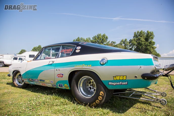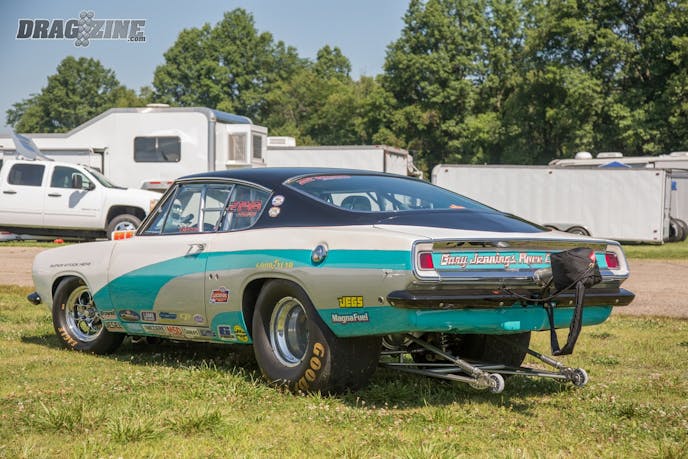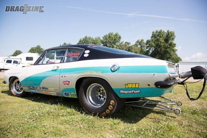 The front suspension of the Duster has been lightened and strengthened with a full set of tubular parts from Overkill Racecars. A set of coilover Strange Engineering shocks and springs with a manual steering rack round out the front end of the car. In the rear, a custom ladder bar suspension and sway bar help to keep the car planted to the track when Vinny releases the transbrake. A set of QA1 single adjustable shocks and springs are in charge of the dampening duties for the rear end of the car.