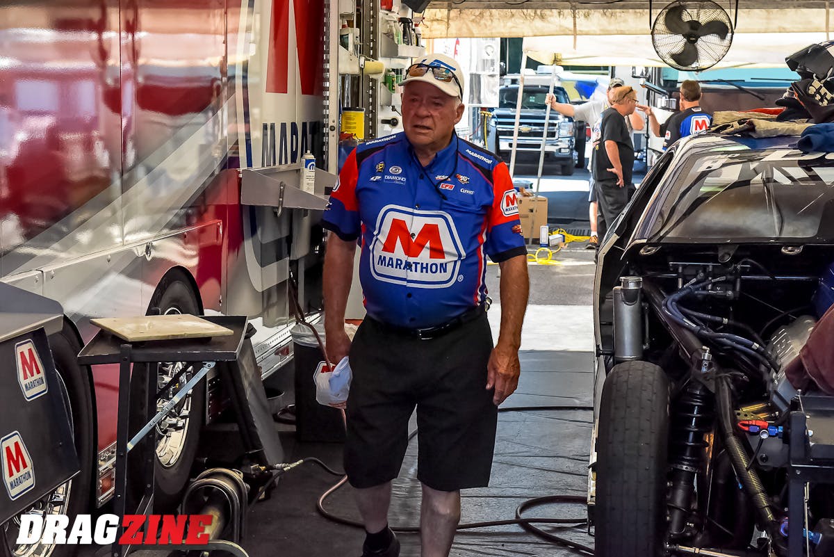 Johnson said he’s satisfied with the non-monetary help he receives from Dodge and Mopar. After all, he’s used to going it alone with dad Roy, an IHRA champion, inspiration for Allen Johnson’s championship team, and today the engine expert. Allen Johnson remembered the days after Chrysler’s 1979 bailout that jettisoned Roy Johnson’s sponsorship and his sportsman rivals “had all the money in the world, and we didn’t have any. Of course, they tried to outrun us and never could. Dad worked night and day just to stay ahead, and them boys had all the money in the world and hired [Gene] Fulton to build their motors. And we were doing everything out of our little one-car garage. They built Camaro after Camaro, trying to outrun us. I don’t think they ever did it. They came close, but they spent a lot of money.” So his situation isn’t all that different now.