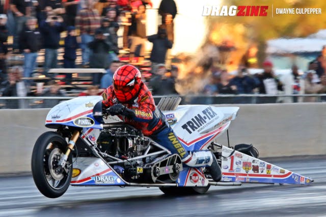 Newport News, Virginia Top Fuel Motorcycle rider Larry “Spiderman” McBride is well regarded as the baddest man on two wheels on the planet, with virtually every accolade out there to back up that claim….everything but the world’s elapsed time record. That was claimed by Swedish racer Peter Svensson back in 2012 with a 5.70, and the McBride brothers have been laser-focused since then on getting it back. Time after time, with atmospheric conditions seemingly in their favor, they’ve come up short. But sooner or later, the cream would rise to the top.
