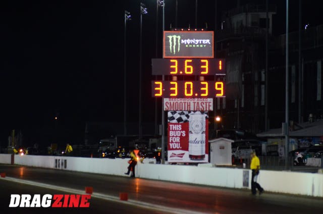 What made Gonzalezs’ run all the more impressive is the 259.71 mph trap speed. Given a back-half gain of 55 to 57 mph as is common with an all-out turbocharged combination and his 219.47 mph eighth-mile speed, the run would have resulted in a speed in the direct vicinity of 275 mph. Gonzalez himself admitted to pulling the plug early, and onboard video backed it up. Tuner Steve Petty confirmed the car was well on its way into the 5.30s, and even alluded to the legitimate capability to go high 5.20’s. This was a staggering run in itself that had all the makings of something even more magical.