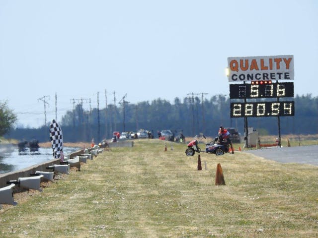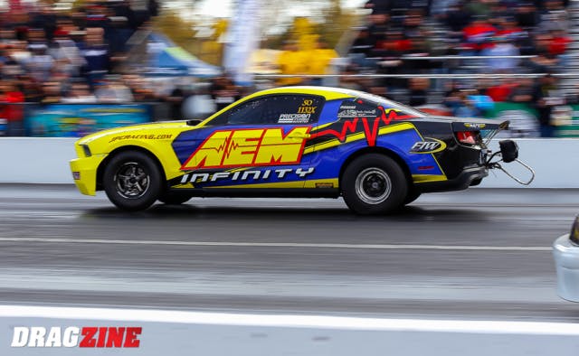 Although it didn’t come under any official class rules, 8.5/235 tire heavy-hitter Justin Cyrnek dropped the boom on the smallest-of-small-tire record book at Tulsa, Oklahoma in September when he clocked the quickest run in history on 235 radials: a 4.441 at 168.60 mph. Cyrnek, the previous outright record holder with a lap of 4.51, removed his MX235-legal 88mm turbo for a 94mm for the record-shattering run, and later backed it up with a 4.47.