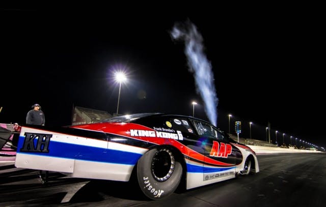 Stinnett opened qualifying at the South Georgia Motorsports Park with a career best 3.821 before shocking the radial tire world with a 3.771 at 197.33 mph to take the top spot provisionally. Proving it was no fluke and cementing his Cinderella-story weekend, Stinnett upped the ante one final time with an incredible 3.751 in the final session to qualify No. 1 in the stacked field. Supercharged Hemi’s took a shot at him, as did twin-turbo Hemi’s and big-inch nitrous cars, and yet none could take down the mighty small-block from Kentucky over the course of those three days in Georgia.