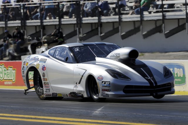 In the NHRA Pro Modified category’s inaugural visit to the Heartland Park Topeka in Kansas, Michigan racer Bob Rahaim stunned the class by qualifying atop the field in his nitrous oxide-assisted Corvette with a 5.746 at 251.49 mph — at the time the quickest quarter-mile run in history by a nitrous-assisted doorslammer and still the quickest in NHRA-legal trim.