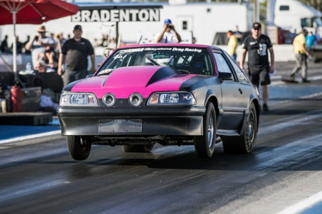 The first man to record a seven-second average in NMRA True Street history, Michigan’s Cal Hayward, broke the record for both NMCA and NMRA True Street competition at the Super Bowl in Joliet, Illinois in July with an impressive 7.489-second average and an all-time-best 7.374-second elapsed time. True Street, of course, requires vehicles to complete a 30-mile cruise and three back-to-back-to-back runs without any parts or tire swap-overs, making it a living hell on an ill-prepared car. But Hayward’s 427-inch small-block Ford-powered, twin 83mm turbocharged Fox body survived it with authority, and amazingly enough, was only being run to just beyond the eighth-mile in Joliet. What would it have run all-out? Mid 7.20s at over 190 mph.