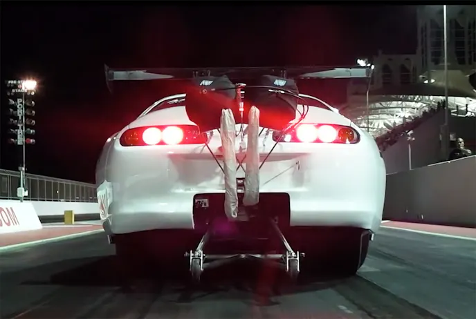 In October, Floridian Gary White, who has been making a second home in Bahrain piloting Ebrahim Kanoo’s shop full of nasty Toyota and Lexus racing machines, charged right to the front of the heap with a blast of 6.05-seconds, eclipsing Rod Harveys’ previous mark of 6.12. Making the run all the more impressive was the fact that White was running 10.5W slicks on the Toyota 2JZ, inline six cylinder-powered Supra. But White wasn’t done there, later returning to the Bahrain International Circuit to click off a 6.040 to solidify his lead in the race to the fives.