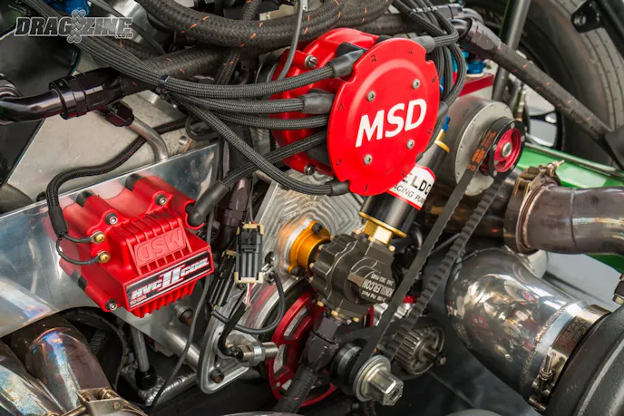 The combination that Daniel alludes to is a 570 cubic-inch 481X engine, once again built by Burns. Burns’ team utilized Alan Johnson Stage 3 cylinder heads, a Hogan billet intake manifold, and parts from BME (rods), Diamond (pistons), Sonny Bryant (crankshaft), Moroso (oiling system), T&D (shaft mount rockers), Smith Brothers (pushrods), and ATI Racing (harmonic balancer) to complete the build. A FuelTech FT500 fuel injection system and MSD Pro Mag manage the fueling and ignition, with boost provided by a pair of 98 mm Precision turbochargers with Tial wastegates and blowoff valves.