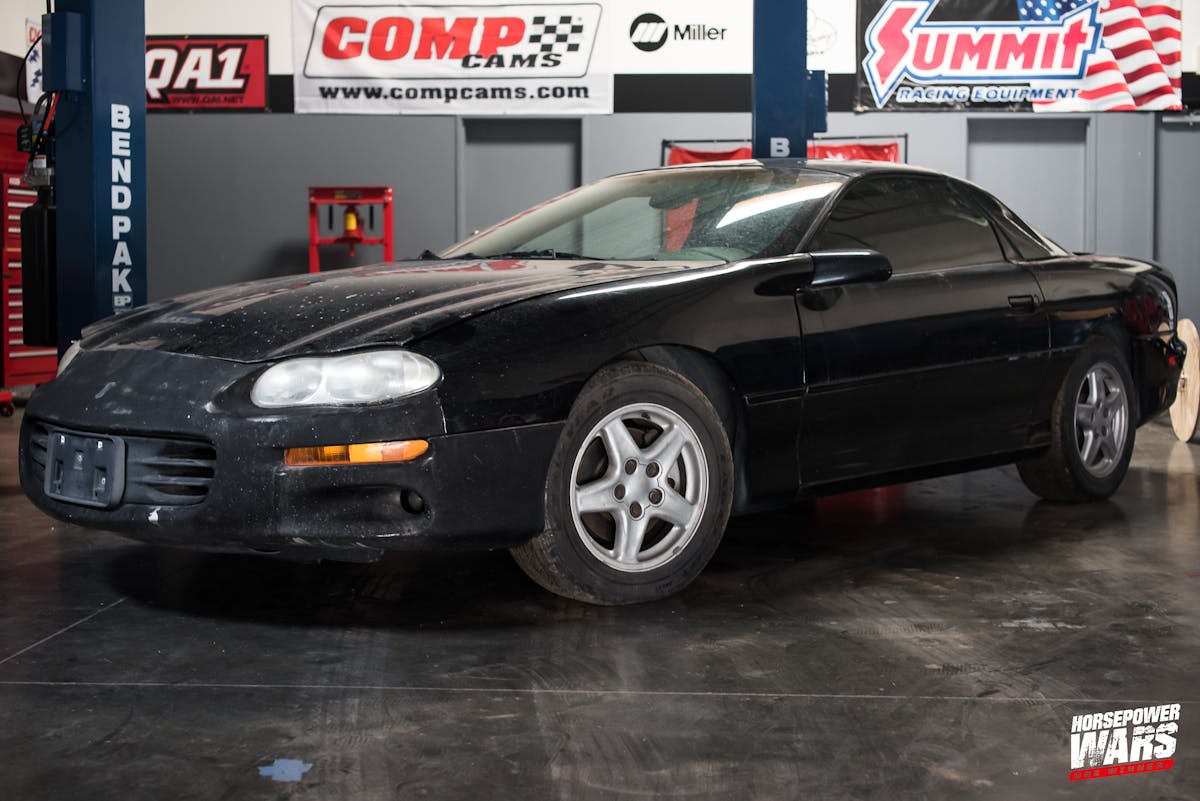 First up, an F-body – 1998 Chevrolet Camaro — three-link torque arm rear suspension, which is tough to get a big-block into (at least in 10 days time, anyway), but light, aerodynamic, and relatively easy to find aftermarket parts for.