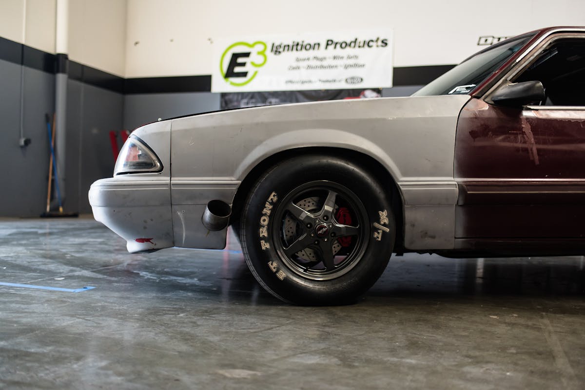 Gunmetal grey Racestar 15 x 4 front and 15 x 10 rear wheels wrapped up in sponsor-provided Mickey Thompson 275 Pro tires, and 26 x 4 M/T fronts give it a striking look for such a cheap car, and sponsor-provided Baer SS4+ Deep Stage brakes up front and “factory” Ford brakes in the rear bring it to a halt.