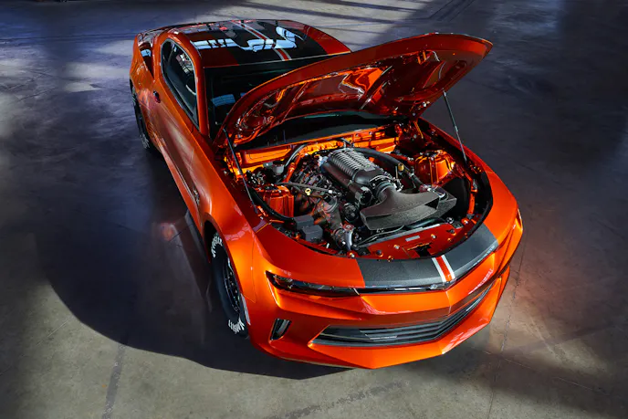 COPO Camaro customers can also select a naturally aspirated 427 (7.0L) or supercharged 350 (5.7L) racing engine. The supercharged 350 enables mid-8-second quarter-mile times at nearly 160 mph. All COPO Camaro engines are backed by an SFI-approved ATI TH400 three-speed automatic transmission.