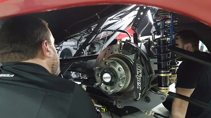With the help of EKanoo Racing's chassis wizard, Jamie Miller, the Red Victor team got their four-link situation lined out, allowing them to get the car off the better-than-they're-used-to staring line at the Bahrain International Circuit.