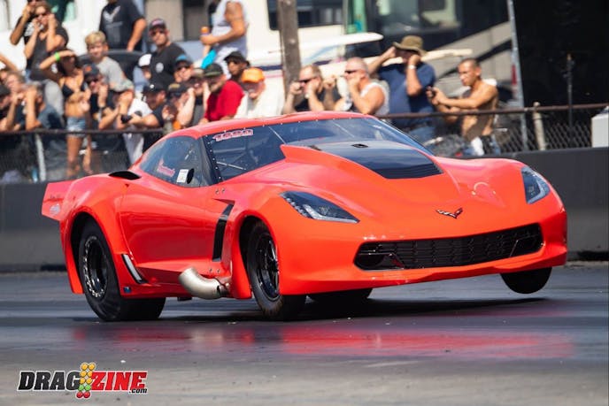 After he was settled in, Quartuccio was ready to let the Corvette eat and it delivered. During the second day of qualifying, Quartuccio leveled the radial tire record with a 5.88-second pass at 250 mph that looked virtually effortless. On that first record-setting pass Quartuccio went 1.08 to the 60-foot block and 3.96 to the 1/8-mile at 201 mph. Then during the first round of eliminations, he ripped off a quicker 5.86 at 253 mph where he went 1.07 through the first 60-feet and 3.94 at 201 mph to half-track. Those kinds of numbers would put him in the field at many 1/4-mile Pro Modified events.
