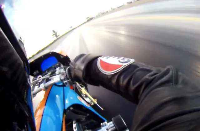 The camera captured it all, from the firing of the bike to the ultra-cool burnout that Top Fuel bikes are known for to the incredible blast off the starting line and even King’s reaction when Hand tells him how quick he just went.
