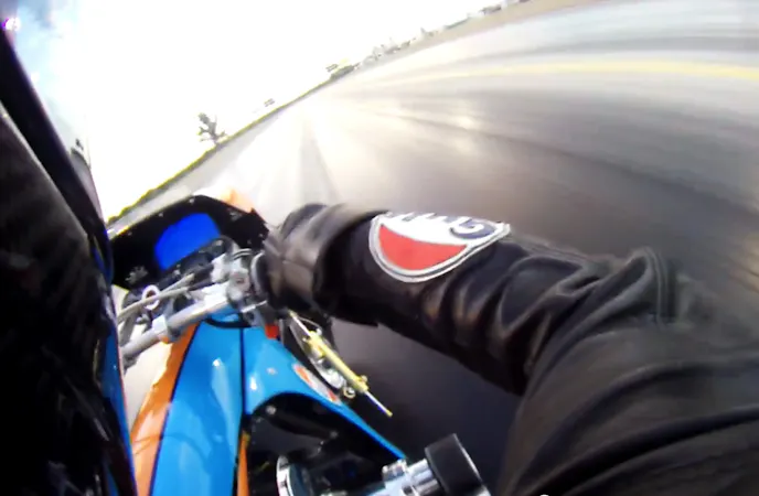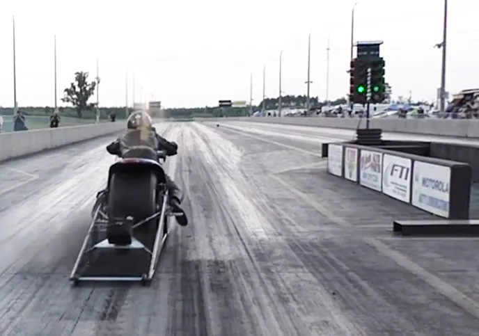 If you ever wondered what it’s like to cover the quarter-mile in less than six-seconds, and 660-feet in righat t or less than four seconds, this is your e-ticket ride. Us? Well, this is about as close to the saddle of that bike as we’d prefer to be.