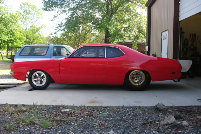 Already with a ’71 Dodge Dart Outlaw 10.5 machine in his arsenal, Baker acquired this Dodge Demon — also a ’71 model — in order to campaign a car that’s closer to the minimum allowed for the category.