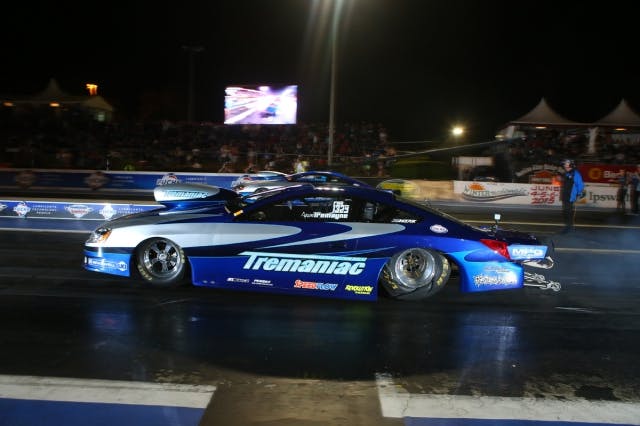 In the final round, Aaron Tremayne faced off against his brother Tyronne in a dream matchup for one of Australia’s most visible racing families. On their way to the final round, the pair traded off the MPH record, with Aaron snagging it first in the quarterfinals, then Tyronne taking it back in the semifinal by clicking off 196.85 MPH through the traps in his defeat of Paul Beauchamp.