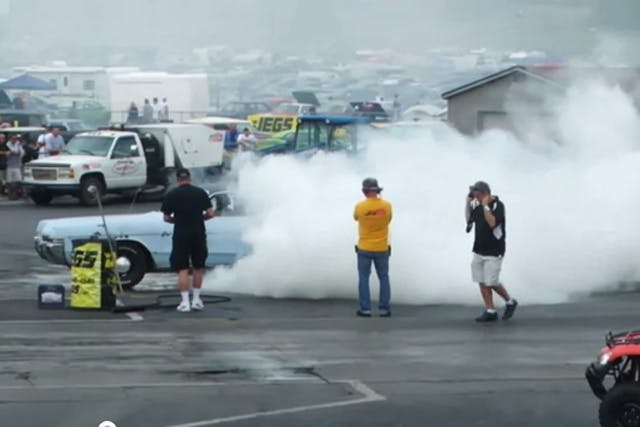 where he won the burnout contest that day. By the amount of smoke that Drone pours out, it’s amazing that he didn’t bust a tire or two.