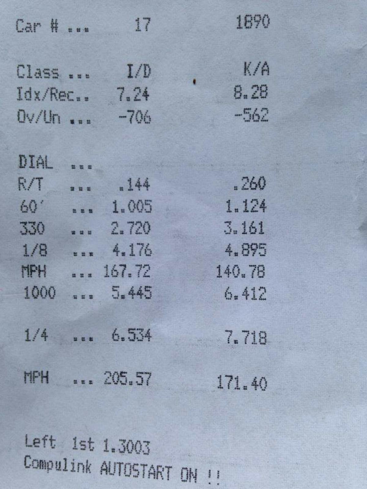 According to Drag Racing Times, that run also puts them at No. 5 in the world for a four-cylinder, with their 2.0L, Powerglide-equipped Extreme PSI/Turbo 4 machine.