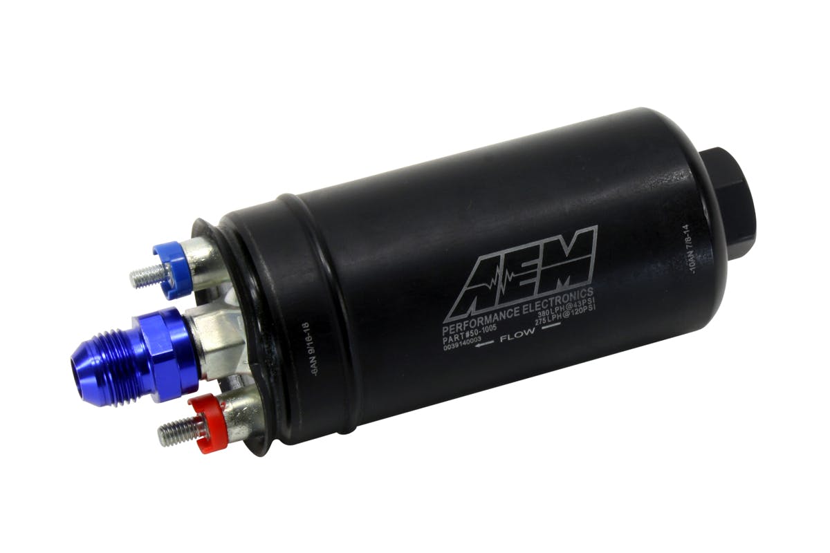 AEM Performance Electronics proudly introduces its 380lph High Flow, High Pressure Fuel Pump for high performance naturally aspirated and forced induction EFI vehicles (PN 50-1005). The 50-1005 High Flow, High Pressure Fuel Pump can be installed externally or in-tank using optional hardware that is sold separately. It utilizes the industry standard “044 Style” envelope and -10 AN female inlet and -6 AN female outlet connections for easy installation on new applications and for quick replacement of existing competitor fuel pumps. The 50-1005 fuel pump delivers incredible performance and value with an approximate street price of $155.00.