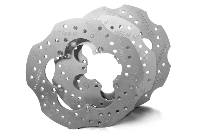 New from Aerospace Components – Titanium drag race wave front rotors. These rotors have “Zero Drag” technology built in, and offer less rotating mass while possessing greater durability than carbon fiber. See more details below.