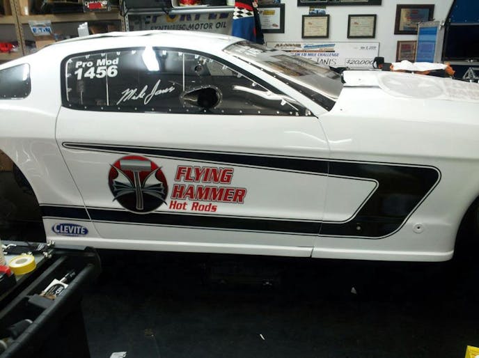 Less than one month ago, veteran Pro Modified competitor Mike Janis was crawling from his battered and bruised supercharged Ford Mustang after a harrowing high-speed crash at the conclusion of a qualifying run down the Gainesville Raceway quarter-mile, during the annual Tire Kingdom NHRA Gatornationals. Janis, one of the most respected and feared racers in the pit area, was unharmed in the incident but the same couldn’t be said for his race car after a roof-first impact with the guardrail at over 200 miles per hour and a subsequent upside down slide through the shutdown area.