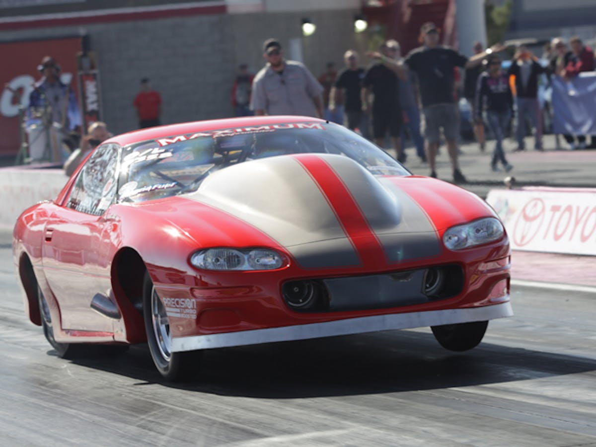 Nick also credits a recent swap from a 3-speed transmission to an M&M Transmissions 2-speed, bolted to a ProTorque torque converter, a combination that is less aggressive and more consistent than the previous 3-speed setup. Menscer Motorsports also revalved the shocks on the car. All of these recent changes have allowed Nick to get more aggressive with the tune earlier in the run, a known weak spot for turbo combinations. As you can see in the video, Nick has the 480 CID small block-powered F Body launching like a rocketship.